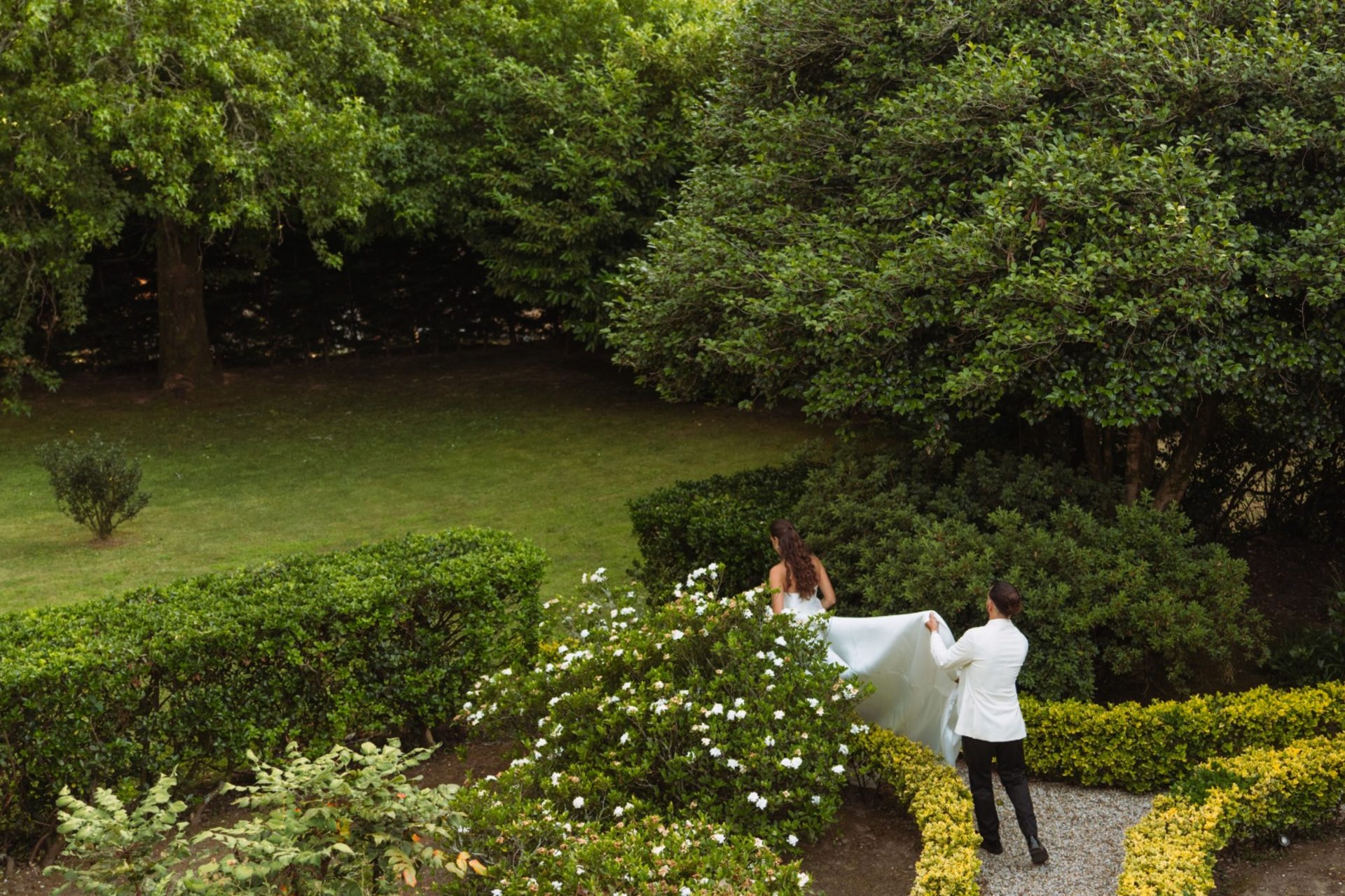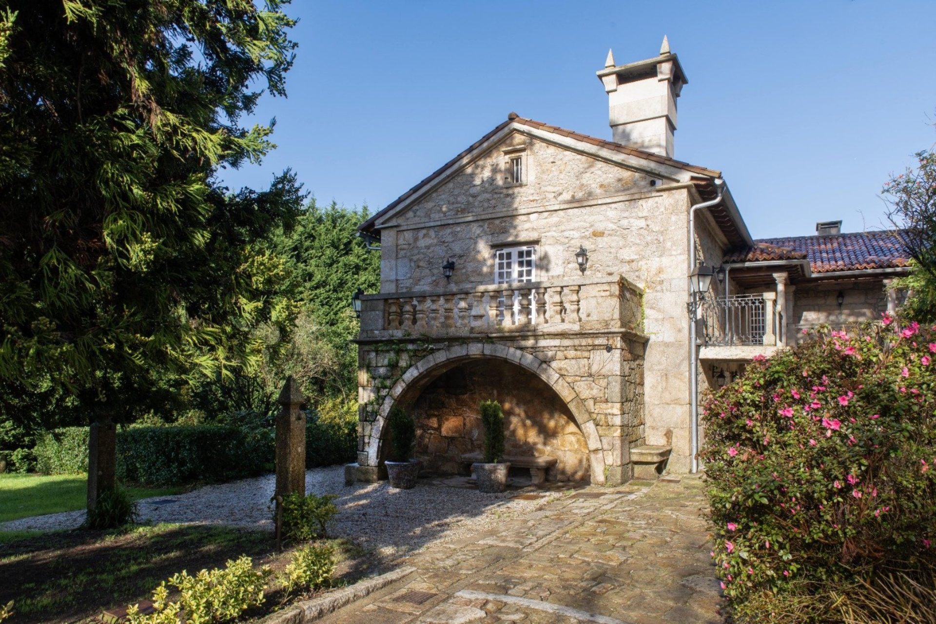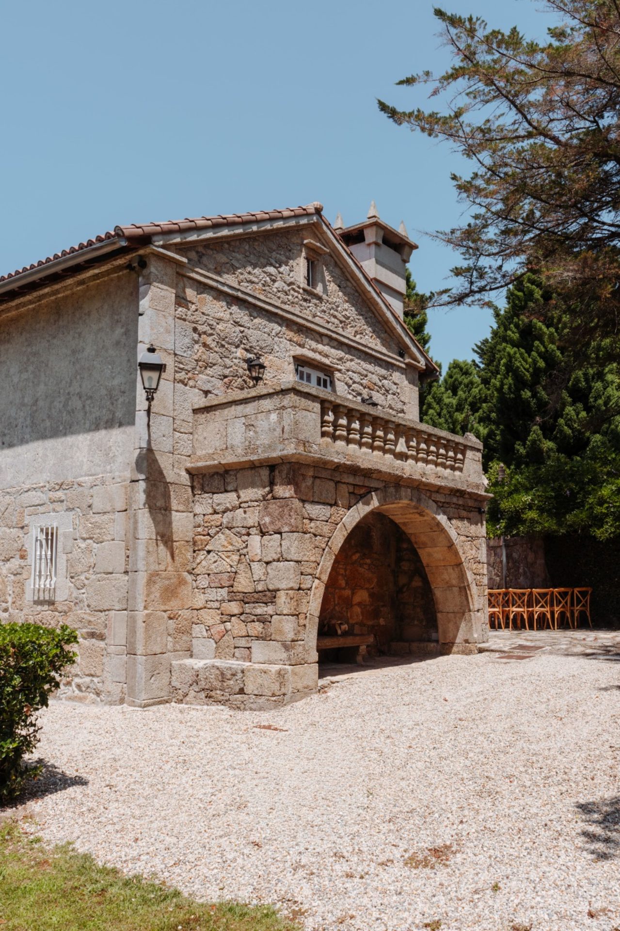 El pazo se encuentra enclavado en un entorno privilegiado, rodeado por 15.000 m² de jardines privados, un espacio amplio y versátil que permite celebrar la ceremonia, el aperitivo y el banquete al aire libre, en plena conexión con la naturaleza. Sus cuidados espacios verdes ofrecen distintos ambientes, perfectos para crear una celebración dinámica y personalizada, con rincones llenos de encanto y privacidad.