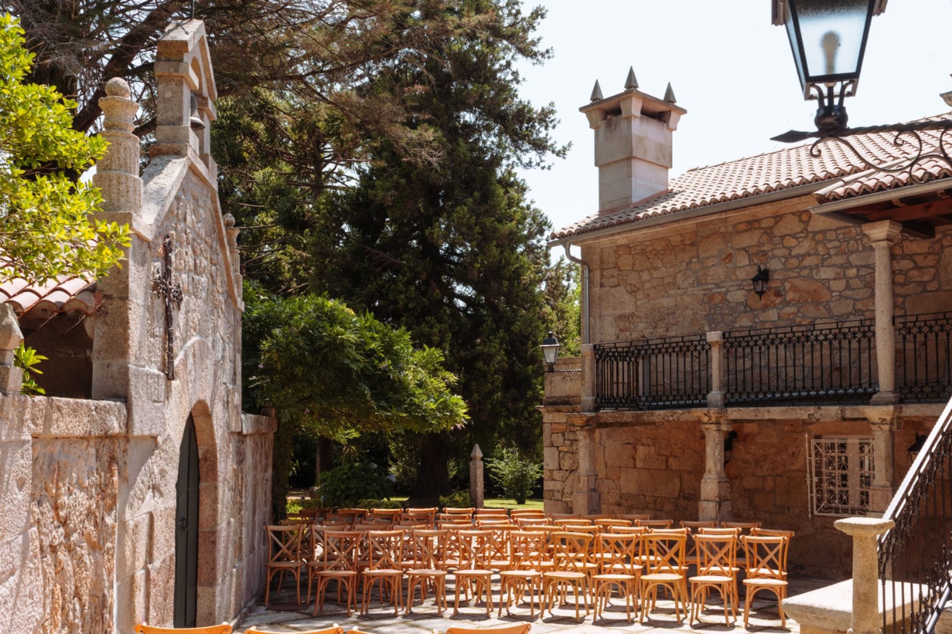 De manera complementaria, el pazo brinda la posibilidad de celebrar la ceremonia religiosa en su capilla privada, un espacio con gran valor histórico y emocional, con capacidad para hasta 200 invitados. Todo el conjunto se completa con jardines singulares y escenarios naturales ideales para la sesión fotográfica, permitiendo realizar todas las fotografías dentro del propio recinto, sin necesidad de desplazarse, y aprovechando al máximo la belleza del entorno.