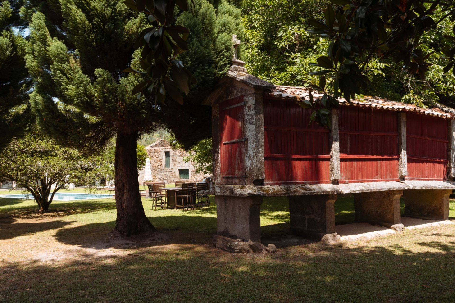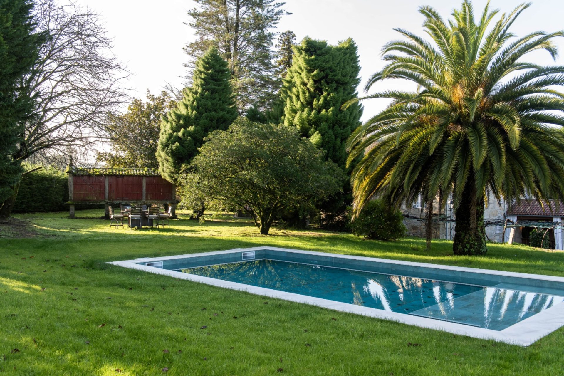 El pazo está rodeado por 15.000 m² de jardines para la ceremonia, aperitivo y banquete en plena naturaleza. Además, dispone de piscina y zonas de descanso, perfectas para momentos de relax y convivencia.