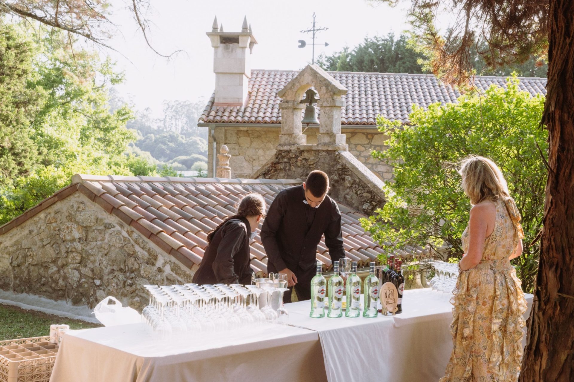 La flexibilidad de los espacios del pazo permite además integrar la gastronomía en distintos ambientes, logrando una experiencia fluida y coherente desde el aperitivo hasta el último brindis.